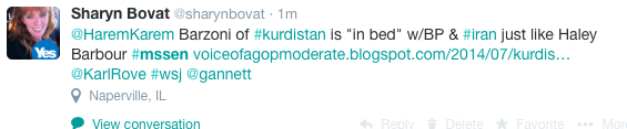 (written by my Son Anjam)From: Sharyn Bovat <sharynbovat@icloud.com>Subject: Re: Conference tour in US for Sardar PishdareDate: July 2, 2014 at 2:04:23 PM CDTTo: Sardar Pishdare Rostam <kurd.oil@btinternet.com>who is currently controlling the strings in the Kurdistan movement?Mossad?Qatar?UK Tony Hayward?WHo?On Jul 2, 2014, at 2:35 PM, BT Yahoo Mail <kurd.oil@btinternet.com> wrote:This is controlled by the old guard Mossad and the UK/Turkey through Tony Hayward Genel EnergyOn Jul 2, 2014, at 1:47 PM, BT Yahoo Mail <kurd.oil@btinternet.com> wrote: